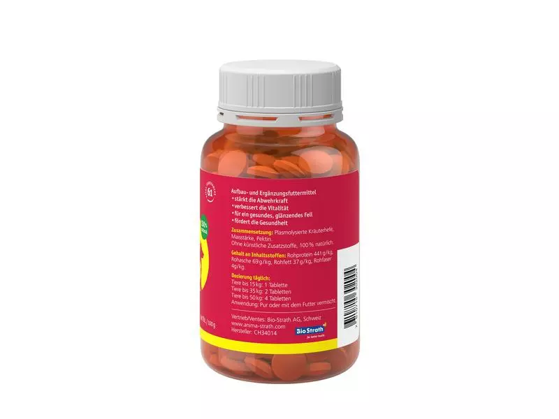 Anima-Strath Produkte sind 100% natürliche, vollwertige Aufbau- und Futterergänzungsmittel für alle Tiere. Sie können direkt verabreicht oder dem Basisfutter beigemischt werden. Die Aufbaumittel enthalten keine synthetischen Zusatzstoffe wie Konservierungsmittel, Geschmackstoffe und Farbstoffe. Die Produkte basieren auf der hochwertigen Strath-Kräuterhefe. Diese enthält viele natürliche Vitalstoffe wie 11 Vitamine, 19 Mineralstoffe/Spurenelemente, 20 Aminosäuren und 11 wichtige Aufbausubstanzen.
