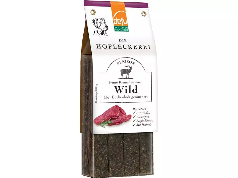 Die Defu Hofleckereien vom Wild bestehen aus 95.5% Hirsch- und Rehfleisch aus Wildbestand und werden in der Räucherkammer mild über reinem Buchenholz geräuchert und veredelt. Sie sind getreidefrei, zuckerfrei, Single Protein und besonders bekömmlich. Die Hofleckereien eignen sich hervorragend als gesunder und wesensgerechter Snack oder als kleine Belohnung zwischendurch. Sie sind frei von jeglichen Zusatzstoffen, hoch verdaulich und damit auch für sensible und ernährungsempfindliche Tiere mit Allergien und Unverträglichkeiten als gesunde Ergänzung der täglichen Nahrung geeignet. Verfeinert werden die feinen Plättchen vom Wild mit Heilerde. Sie ist ein echter Allrounder und wird seit Jahrhunderten erfolgreich gegen viele Beschwerden und auch präventiv heilsam eingesetzt. Heilerde enthält eine ideale Zusammensetzung an Mineralien und Spurenelementen und kann giftige Substanzen und Stoffwechselprodukte im Verdauungstrakt binden, wirkt resorbierend, basisch und antibakteriell. Die Plättchenform eignet sich ideal als Trainingsleckerli für unterwegs oder auch als präzise, schnelle Belohnung auf dem Hundeplatz.