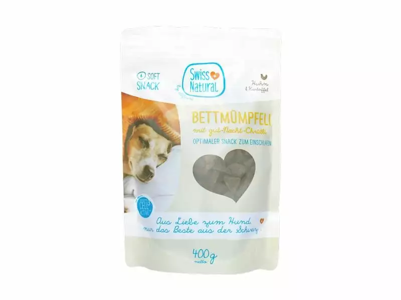 Auch Hunde lieben Bettmümpfelis, sei es für den Abendspaziergang oder vor dem Einschlafen. Diese feinen Leckerlis enthalten fünf Kräuter aus der ayurvedischen Naturheilkunde, die die Verdauung und den Energiestoffwechsel unterstützen und ideal für einen gesunden und tiefen Schlaf sind.