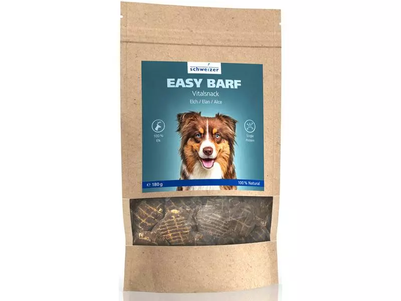 Genuss pur für jeden Hund! Der exklusive Vitalsnack Elch verleiht eine extra Portion Kraft und Vitalität. Mit 100% frischen Zutaten aus der schwedischen Natur.