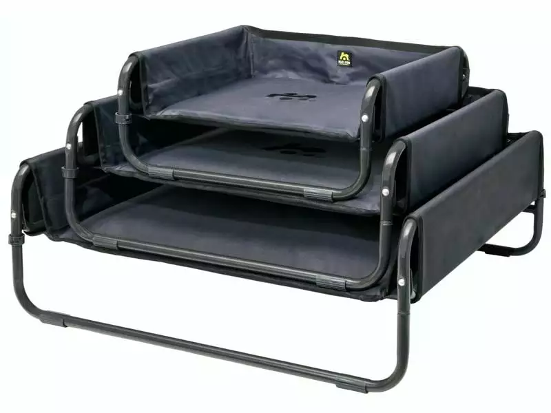 Das faltbare Maelson Soft Bed ist nicht nur ein tolles Hundebett für unterwegs auf Reisen, auch Zuhause ist es ein praktischer und beliebter Liegeplatz für Ihren Hund. Durch die erhöhte Liegefläche fühlt sich Ihr Hund schon fast so, als läge er auf der Couch. Aber auch ansonsten hat die erhöhte Liegefläche seine Vorteile. Es schützt Ihren Hund vor kalter Bodenzugluft und kalten Böden, sowohl drinnen als auch draussen. Ausserdem lieben Hunde die erhöhte Liegeposition. Die gepolsterte Liegefläche des Maelson Soft Bed ist mit einem robusten hochwertigen Nylonmaterial überzogen, welches absolut pflegeleicht und natürlich waschbar ist. Für eine Entlastung der Wirbelsäule sorgt eine feste Liegefläche unterhalb der Polsterung, welche bei Bedarf entfernt werden kann. Das Gestell dieser Hundeliege besteht aus einem starken Stahlrohrgestänge, welches für zusätzliche Stabilität sorgt. Das Maelson Soft Bed lässt sich ganz leicht ohne Werkzeug aufbauen und wieder zusammenfalten. Es müssen lediglich die Stangen in der vorgegebenen Position einrasten.