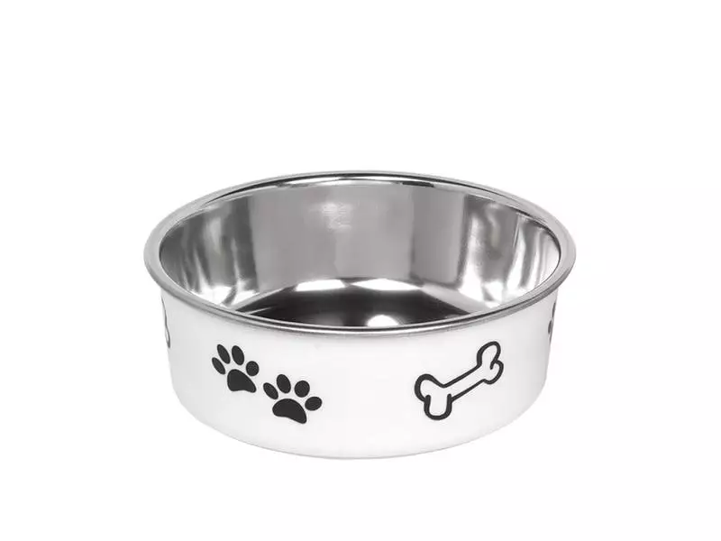 Der Hundenapf «Fusion» aus Edelstahl und Kunststoff ist mit Pfoten- und Knochenmotiven versehen. Dank eines fest verbundenen Gummirings ist der Napf rutschfest und praktischer Weise spülmaschinengeeignet. Er ist in verschiedenen Grössen und Farben erhältlich und eignet sich ideal zur Ergänzung jeder Grundausstattung, sowohl zu Hause als auch unterwegs.
