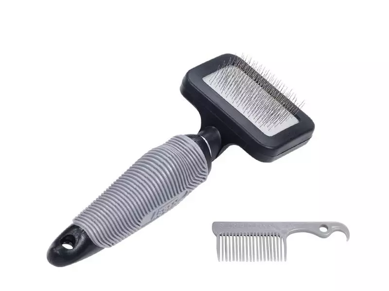 Die Pflegeserie «Starline» zeichnet sich durch seinen ergonomischen Softgriff aus. Die Anwendung wird dadurch optimiert und ist angenehm für Mensch und Tier. Das übersichtliche Sortiment ist aufgeteilt in vier Anwendungskategorien. Die «Rupfbürste» ist eingeordnet in die Kategorie «Unterwolle & Fellwechsel». Sie ist optimal geeignet für die sanfte Entfernung von Unterwolle und losen Haaren, gerade bei Grob- und Kraushaar-Rassen (z.B. Pudel) oder auch Katzen. Die Borsten sind aus sehr weichem Draht hergestellt und garantieren so eine schonende Fellpflege.